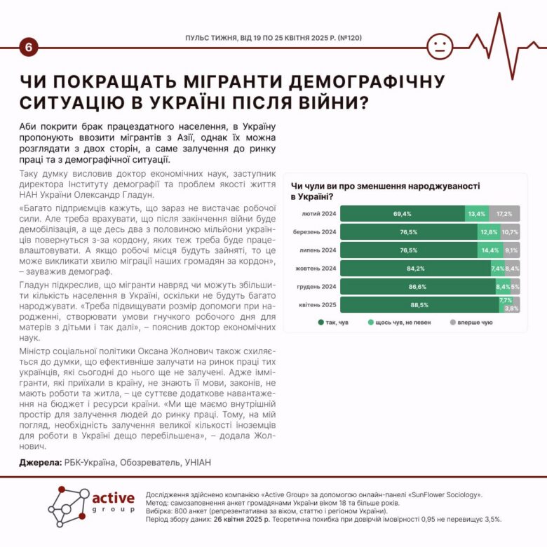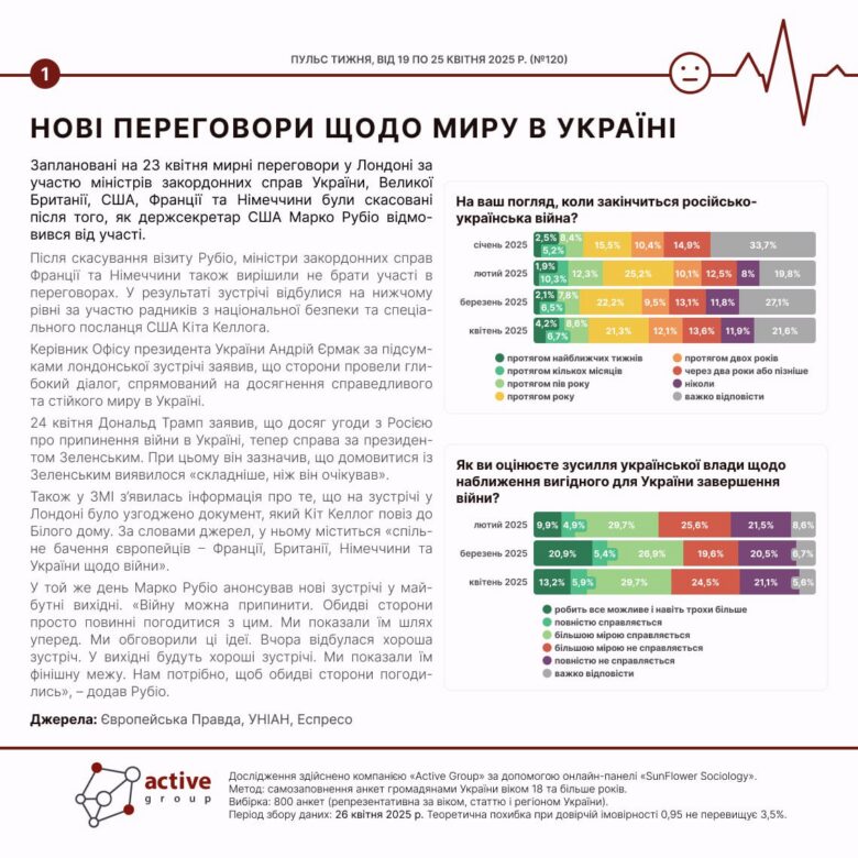 April 29, 2025 - Actual, Ratings(Українська) Пульс тижня: 19 – 25 квітня (№120) Sorry, this entry is only available in Українська.